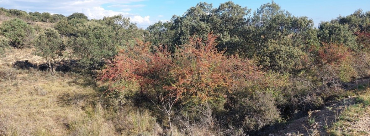 mayor parte del año y que cuenta con arbustos espinosos como son el majuelo y rosales silvestres en una zona de borde de un encinar/quejigar, con matorral de aulaga. - Los Cerraos (Zona principal de alimentación y engorde en los meses de fructificación de saúcos y zarzas).Se trata de una olmeda que recurrentemente se seca y rebrota con abundantes arbustos con frutos en la época estival y otoñal como son las zarzamoras y los saúcos.